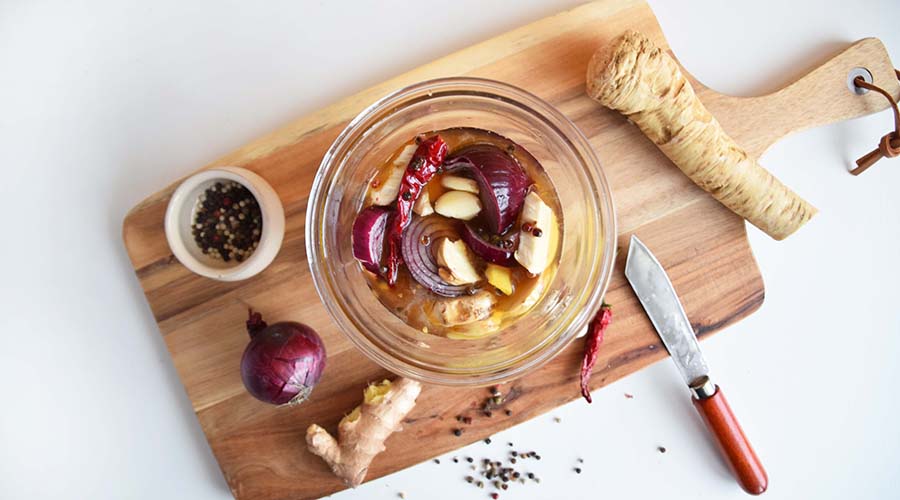 Ein Bitterpulver ist immer ein Akutmittel, dass bei Völlegefühl, Blähungen oder Magen-Darm-Problemen durch die Bitterstoffe helfen kann. Auch der Nussschnaps ist meine Geheimwaffe, gerade dann, wenn mir übel ist. Und bei Durchfall, schwöre ich auf meine Blutwurz-Tinktur.