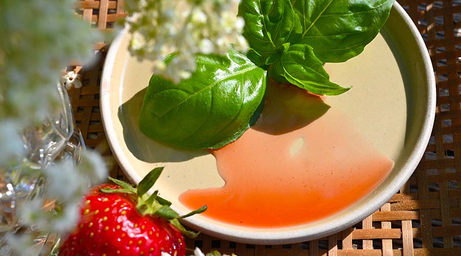 Danach wird alles abgeseiht und der Met-Essig ist fertig, um verwendet zu werden. Bitte nicht mitkochen, denn sonst geht der komplette Geschmack verloren. Dieser Essig darf alles als Finish verfeinern, was einem schmeckt.