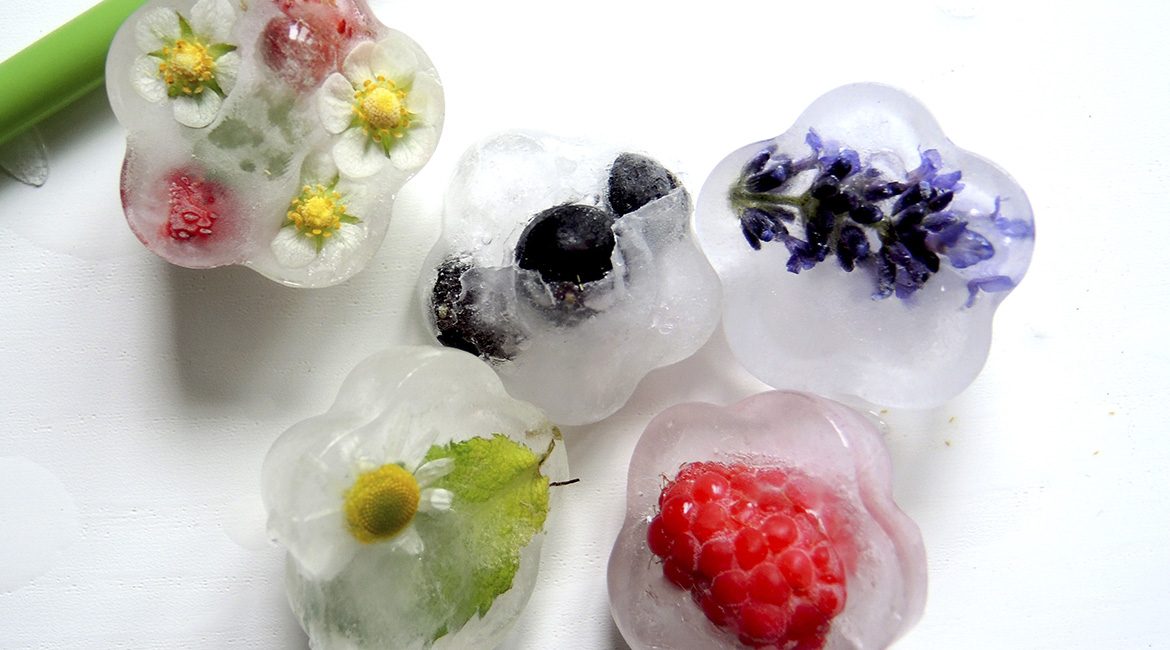 Ein langes drum herum Reden ist nicht in dieser Woche. 🙂 Es wird kurz und knackig denn meine Sommereiswürfel mit Blumen, Kräutern und Beeren gehören zu den einfachsten Dingen, die wirklich jeder kann. Gerade jetzt, wo wir uns im Hochsommer befinden, gibt es genügend Pflanzen oder Früchte, die umhüllt von Eiskristallen, ganz besonders ansprechend wirken. Und wie ihr es euch wohl denken könnt, die Vorgangsweise ist ziemlich einfach: Essbare Pflanzen oder Früchte in einen Eiswürfelbehälter geben, Wasser drüber, rein in den Tiefkühler und fertig!